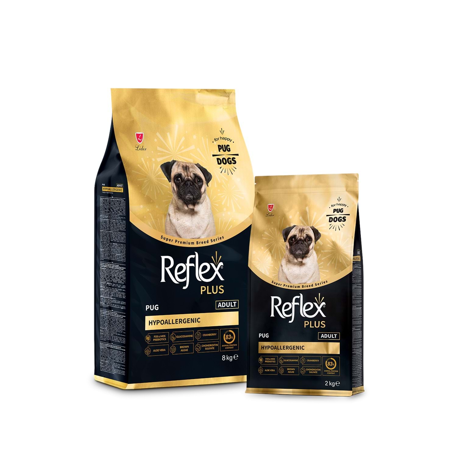 10 aylıktan büyük, Pug ırkı köpeklere uygun tam ve dengeli formüle edilmiş, süper premium kuru köpek mamasıdır.